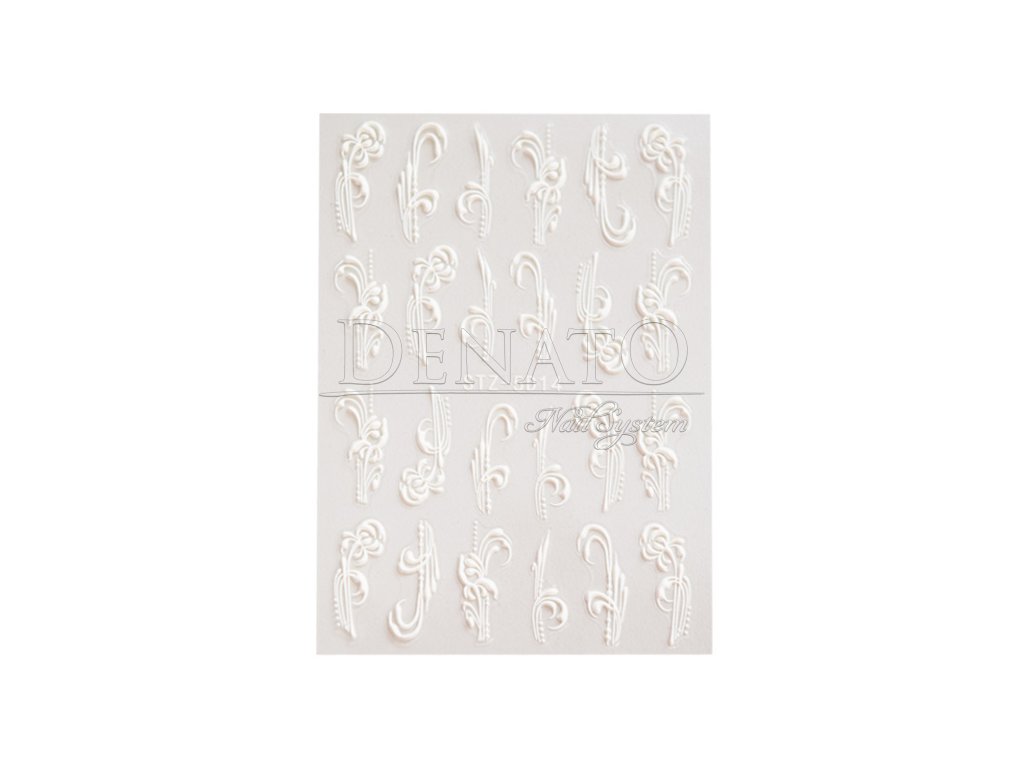 Élégants autocollants pour ongles avec de délicats ornements 3D blancs qui donnent à la manucure un effet raffiné et en relief. Feuille d’environ 8 × 10 cm.