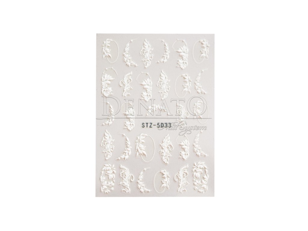 Élégants autocollants pour ongles avec de délicats ornements 3D blancs qui apportent à la manucure un effet luxueux et en relief. Feuille d’environ 8 × 10 cm.