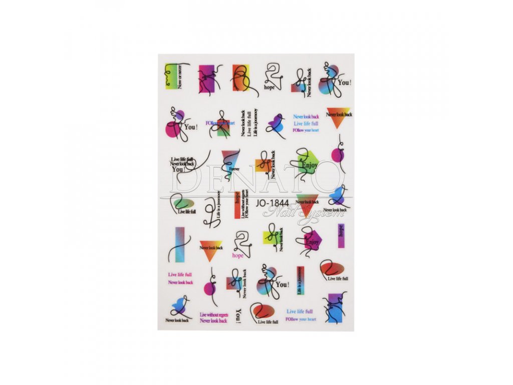 Ces autocollants pour ongles associent des motifs line-art minimalistes à des blocs colorés arc-en-ciel dans des tons de bleu, rose, vert, jaune, orange et violet. Les messages courts tels que « Live life full », « Never look back », « Follow your heart », « Enjoy » ou « You! » apportent fraîcheur, énergie et une touche moderne à la manucure. Parfaits pour des créations joyeuses et artistiques.