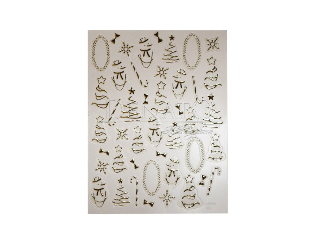 Luxueux autocollants pour ongles de Noël dorés – bonhommes de neige, sapins, étoiles et ornements festifs. Feuille d’environ 8 × 10 cm, parfaite pour une manucure élégante et scintillante pendant la période hivernale.