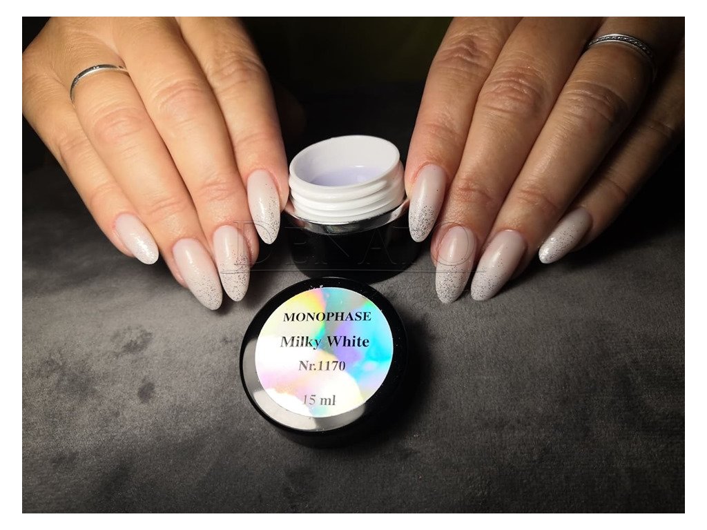 MONOPHASE PLUS Milky White est un gel LED UV de construction monophase à viscosité moyenne, de couleur blanc laiteux. Parfait pour masquer les imperfections, créer des ongles d’apparence naturelle et pour une construction précise sur chablon. Application facile et résultat fiable, aussi bien pour les débutants que les professionnels.