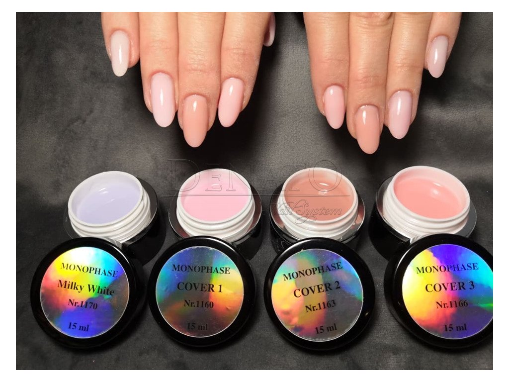 Gel LED UV monophase de construction à viscosité moyenne. Le gel est de couleur blanc laiteux. Convient également à la construction de l’ongle sur chablon.