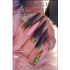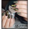 Vernis gel UV/LED à forte pigmentation et adhérence maximale en noir–vert–or avec un effet CAT EYE unique.